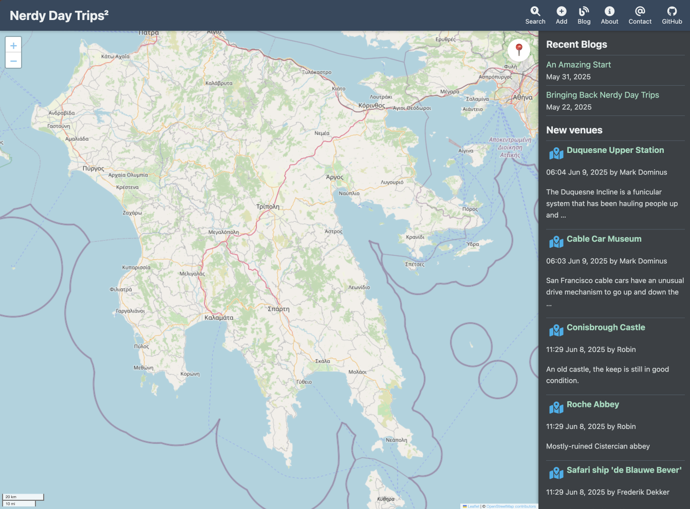 Thanks again to everyone for their feedback, support, and of course, their contributions to the NerdyDayTrips.